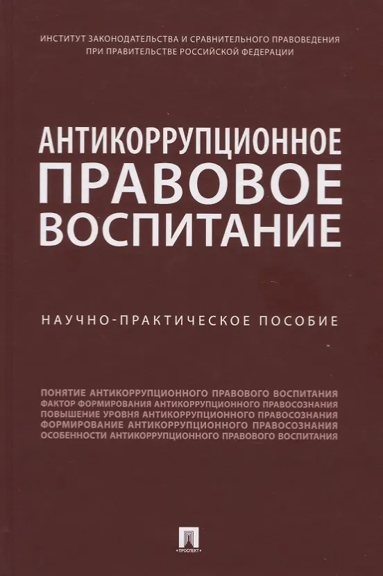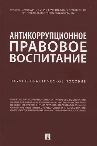 В научно-практическом пособии раскрываются основы антикоррупционного правового воспитания — важного компонента системы правового воспитания граждан. Антикоррупционное правовое воспитание рассматривается в качестве фактора формирования антикоррупционного правосознания. Показаны основные методики антикоррупционного правового воспитания в различных сферах государственной и общественной жизни — нормотворческой, государственно-контрольной, предпринимательской, педагогической деятельности. В связи с процессом цифровизации, во многом определяющим в современных условиях направления развития общества и государства, проанализированы особенности антикоррупционного правового воспитания в сети «Интернет».