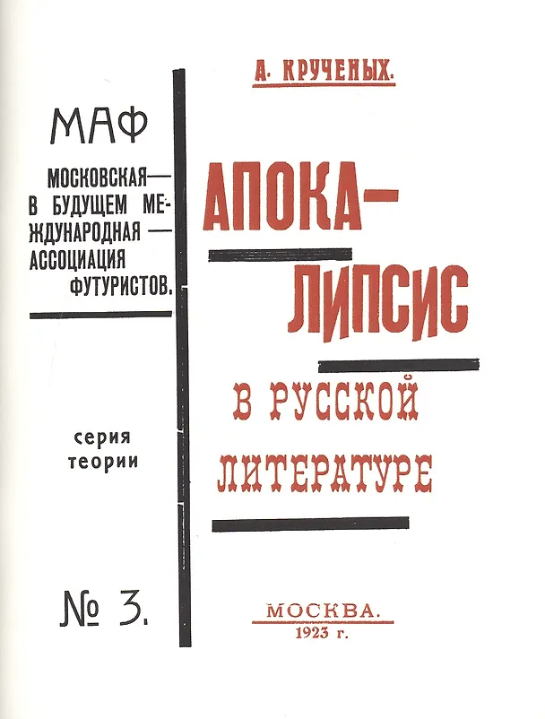 Апокалипсис в русской литературе Серия теории №3 Репринт. изд. кн. 1923 г. (мРепрСвИзд) Крученых