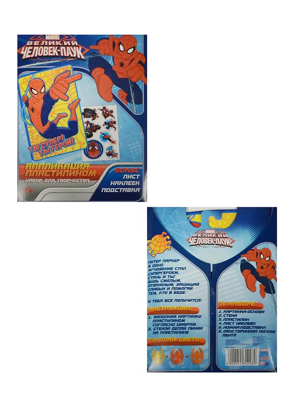 Аппл. пластилином Ты супер Ты герой Человек Паук (1161228) (пластилин/6цв.х10гр.+накл.) (Marvel Великий Человек-Паук) (3+) (упаковка)