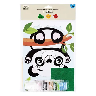 Аппликация из песка и цветной фольги Три Совы "Панда", с раскраской