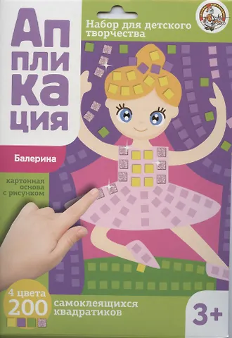 Набор для детского творчества - аппликация «Балерина» состоит из 1 цветной картонной карточки размером 20х16 см с изображением танцовщицы и 4 цветных блоков. Ребенку необходимо украсить картинку объемными самоклеящимися квадратиками. Этот процесс превосходно разовьет моторику неловких пальчиков и стимулирует творческие наклонности.