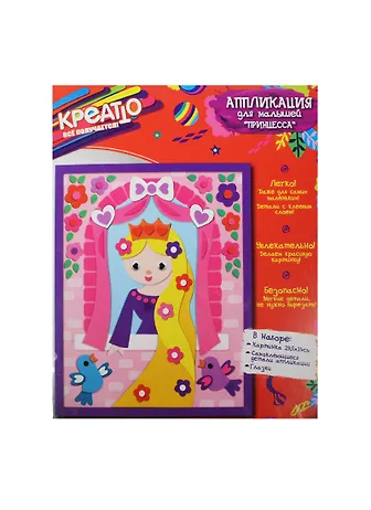 Аппликация для малышей Принцесса (23869) (29,5х24см) (+самокл. дет.+глазки) (Креатто) (набор для творч.) (3+) (упаковка)