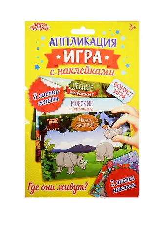 Аппликация-игра с накл. Животные (набор д/твор.) (1240925) (3+) (упаковка) (Школа талантов)