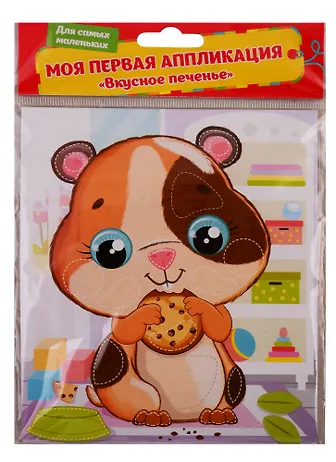 В наборе для многослойной аппликации "Вкусное печенье" ТМ "КРЕАТТО": цветная картинка размером 15х18 см с рисунком, самоклеящиеся детали из мягкого материала ЭВА, пластиковые вращающиеся глазки. Товар сертифицирован. Упаковка - пакет с цветным вкладышем-инструкцией.