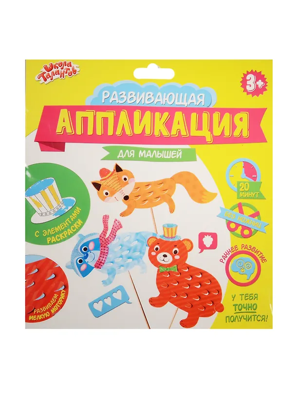 Аппликация-обучалка Звери для самых маленьких (1278055) (20 мин.) (бумага) (Развивающая аппликация) (3+) (упаковка) (Школа талантов)