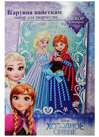 Аппликация пайетками Холодное сердце, 3 цвета пайеток, бантик, А4
