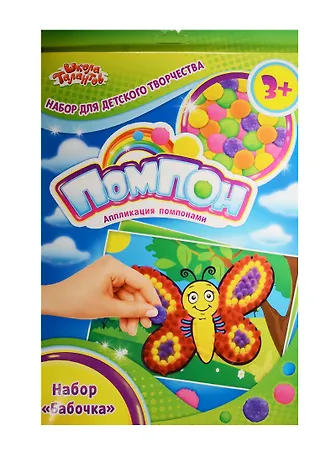 Аппликация помпонами Бабочка (набор д/творч.) (1062245) (3+) (коробка) (Школа талантов)
