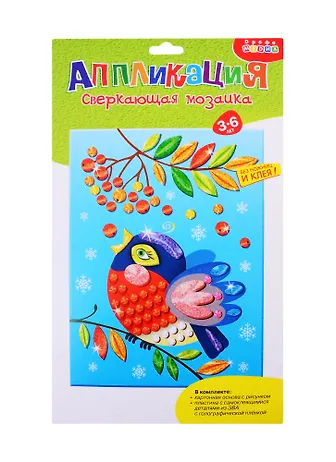 В наборе: — цветная основа с рисунком и схемой размещения деталей, — детали из ЭВА с голографическим покрытием на самоклеящейся основе, — пластмассовый глазик, — цветная листовка-образец.