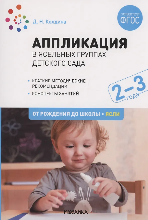 В данном пособии представлены конспекты увлекательных занятий с детьми 2-3 лет по аппликации из цветной бумаги, салфеток, ватных дисков, скотча, журнальных страниц, засушенных листьев. Эти занятия формируют у детей навыки аппликации, помогают им познать окружающий мир, пробуждают эмоциональную отзывчивость, развивают восприятие, мышление, внимание, память, творческое воображение, любознательность, мелкую моторику.