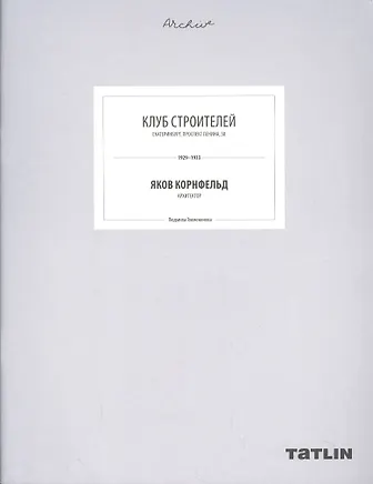 Книга посвящена одному из самых заметных конструктивистских зданий Екатеринбурга — «Клубу Строителей» архитектора Якова Корнфельда, известного как «здание Свердловской киностудии».