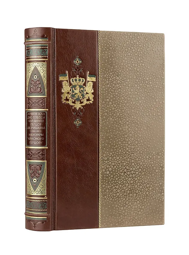 Арман Жан дю Плесси кардинал герцог де Ришелье. Мемуары "Красного герцога". Коллекционное иллюстрированное издание премиум-класса в кожаном переплете ручной работы в стиле 19 века сбинтами, красочным тиснением и торшонированными обрезами