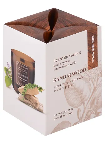 Ароматизированная свеча в стакане фитиль деревянный Древесина (Wood) (150гр) (подарочная упаковка)