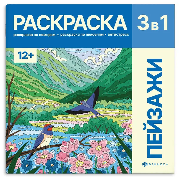 Раскраска. Серия "Картины по номерам 3-в-1" арт. 72307 ПЕЙЗАЖИ /215x215 мм, 16 л., блок - офсет 120 г/м², полноцветная печать/печать в одну краску, обл - мелованный картон 200 г/м², мягкий переплёт (2 скобы).
