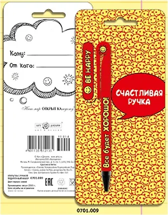 АРТ ДИЗАЙН Подарочный набор: Открытка с ручкой Счастливая ручка, 0701.009
