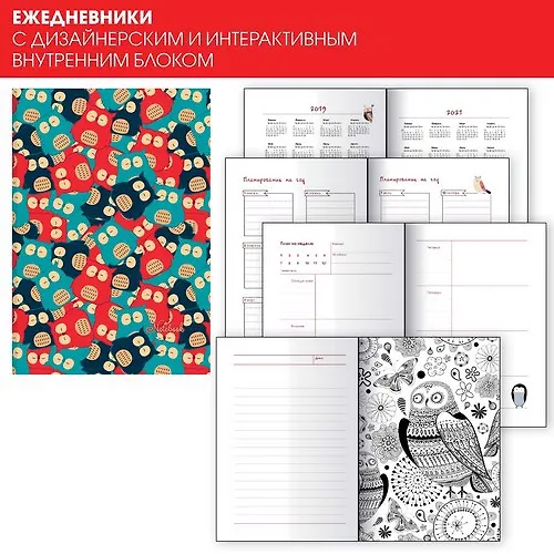 Арт-ежедневник Эксмо А6+ 128л. недатированный Всюду совы. Дизайн4 иск.кожа, интеграл.обл.