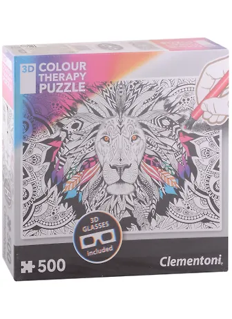 Арт-терапия, Пазл Clementon Лев 500эл.+3D очки 35051