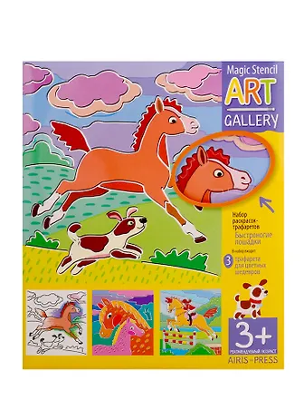 АРТ. Трафареты. Быстроногие лошадки. 3 пластиковые основы