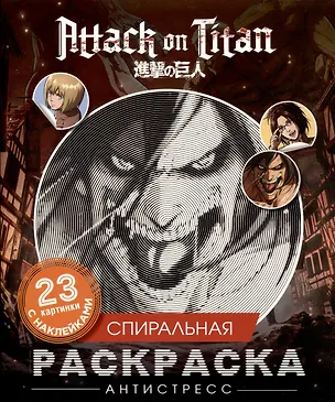 Атака титанов. Спиральная раскраска-антистресс с наклейками