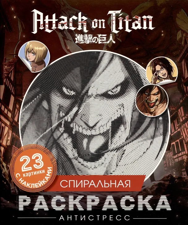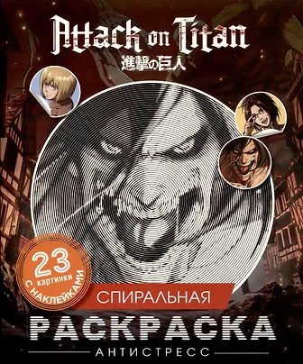 Серия спиральных раскрасок-антистресс поможет успокоиться и расслабиться. 23 зашифрованные картинки завладеют вашим вниманием, как только карандаш коснется спирали. В комплекте к каждой картинке вы найдете подходящую наклейку. Подбирайте стикеры и отмечайте ими законченные картинки, приклеив на страницу. Отвлекитесь от ежедневной суеты вместе с любимыми героями популярного аниме «Атака Титанов».