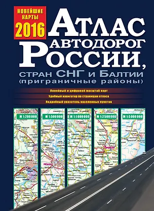 Атлас включает автодорожные карты масштабов 1:200 000, 1:500 000, 1:1 000 000, 1:2 500 000 и 1:5 000 000 на территорию России, стран СНГ и Балтии (приграничные районы), составленные с привлечением топографических материалов и статистических данных. В конце атласа имеется подробный указатель названий населённых пунктов. На картах Атласа показаны автомобильные дороги с различным покрытием, выделены дороги федерального значения, указаны расстояния между населенными пунктами и точками пересечения дорог, даны другие полезные сведения.