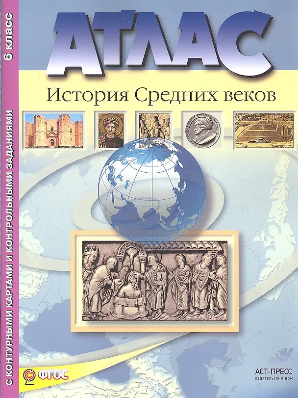 Атлас "История Средних веков" с контурными картами и контрольными заданиями. 6 класс