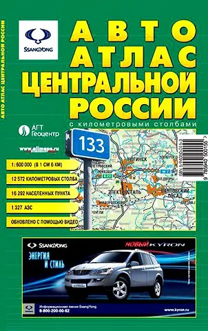 Авто атлас Ценральной России с километровыми столбами м 1:600000