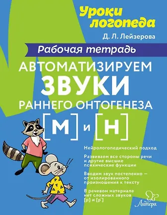 Данное пособие поможет ввести в речь ребенка твердые звуки раннего онтогенеза М и Н. При этом в нем не используются сложные звуки Р и Рь. Вначале звук закрепляется изолированно, затем в слогах, в словах, во фразах и предложениях и только потом в текстах. Яркие иллюстрации, игровые задания и милые сквозные персонажи увлекут малыша и сделают занятия веселыми и интересными.