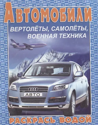 Автомобили, вертолеты, самолеты, военная техника. Раскрась водой