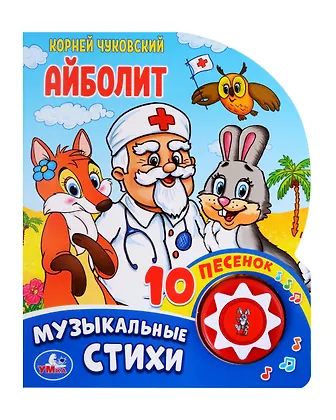 Озвученная книга. 1 звуковая кнопка, 10 песен. Музыкальные стихи. К. И. Чуковский. Айболит, ТМ «УМка»: