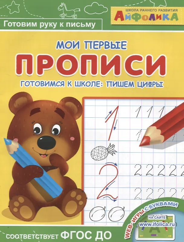 Вашему вниманию предлагается обучающая книга «Айфолика. Мои первые прописи. Готовимся к школе: пишем цифры».