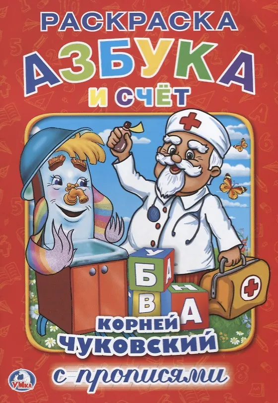 Занимательная раскраска с прописями "Азбука и счет" от известного российского производителя "Умка" с героями из любимых детских сказок Корнея Чуковского поможет ребенку освоить азы алфавита и счета в веселой игровой форме.