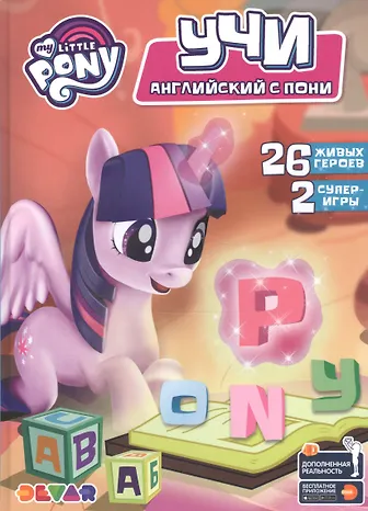 Посмотри, буквы английского алфавита разбежались по всей Эквестрии, и твои любимые герои-пони могут потерять имена и свой дом, совершенно забыв, как что называется. Но не беда, ты уже здесь и знаешь все о волшебной стране и ее обитателях, так что с легкостью справишься с заданиями в дополненной реальности и английским языком. Эквестрия ждет своего героя! Яркая и красочная книга «Учи английский с пони» не похожа на другие азбуки. Герои помогут в освоении незнакомого языка, расскажут немного о себе и предложат поиграть в интересные, а главное, познавательные игры. Ребенок чуть больше узнает об Эквестрии, о ее жителях и заодно играючи выучит английский алфавит. А после изучения всех букв малыш
