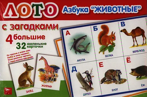 Лото. Азбука "Животные" с загадками. Для совместной досуговой деятельности детей и взрослых.