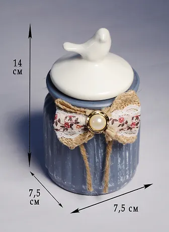 Банка декоративная Прованс Птичка с бантиком (7,5х7,5х14) (222-066)