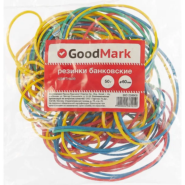 Хорошие резинки для различных хозяйственных нужд, упаковка пришла целая. Резинок много и они различных цветов. Мне попалась упаковка с желтыми, красными, зелеными и голубыми резинками. Посчитала количество резинок- 65 шт. Резинки прочные, не рвутся, если сильно не растягивать. Есть небольшой запах резины. К покупке рекомендую.