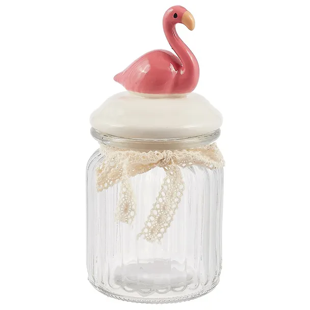Баночка стекло с керамической крышкой Фламинго розовый (7,5х16)
