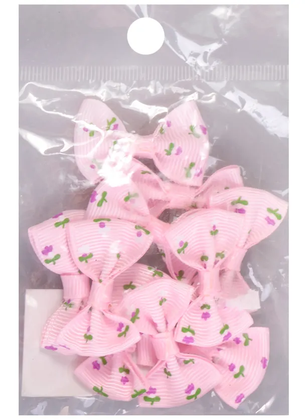 Бантики пришивные с рисунком в цветочек (10шт), светло-розовый (11-01055-6)