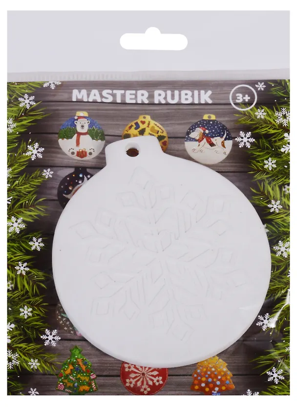 Барельеф гипсовый для творчества Шарик-снежинка Кружа (38) (Новогодние украшения) (3+) (упаковка) (Master Rubik)