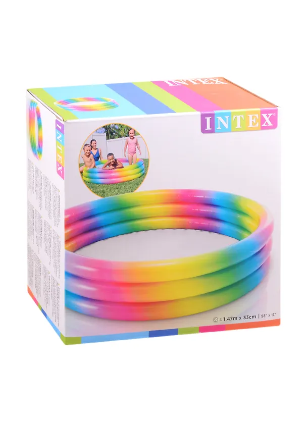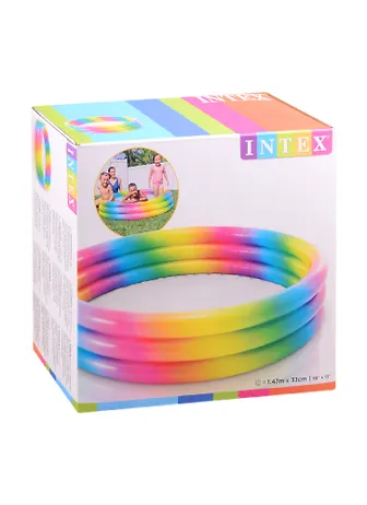 Intex Бассейн надувной детский «Радуга» с надувным полом подойдет для возраста от 3-х лет, модель может выдержать одновременно нескольких детей. Для использования бассейна не требуется специальная подготовка грунта, поэтому его можно использовать где угодно - на даче, на пляже, в помещении.