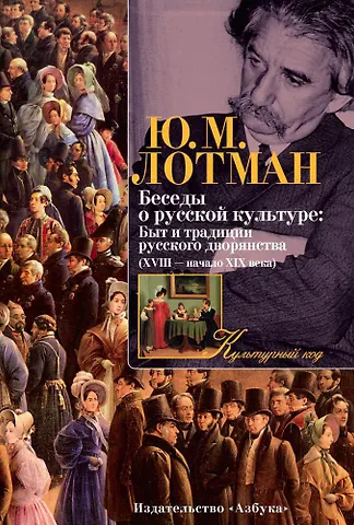 Юрий Михайлович Лотман — всемирно известный ученый, филолог и культуролог, чьи труды переведены на все основные европейские языки. Его творческое наследие чрезвычайно обширно и насчитывает около восьмисот научных и научно-популярных статей и книг. В конце 1980-х годов он читал на телевидении лекции о быте и традициях русского дворянства: эти телепередачи собирали у экранов миллионы зрителей. На основе телевизионного цикла лекций ученым и была создана книга «Беседы о русской культуре». Она погружает читателя в эпоху XVIII — начала XIX века, которая представлена через реалии повседневной жизни: Табель о рангах, домашнее образование, великосветский бал, дуэль, карточная игра и др. Благодаря раз