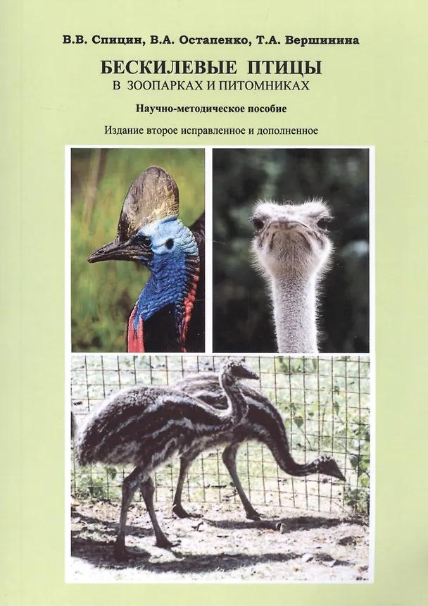 Пособие содержит оригинальные практические подходы и методы содержания и разведения страусообразных птиц, рассмотрены вопросы кормления, профилактики и лечения инфекционных и других болезней, организации и дизайна экспозиций в зоопарках и питомниках. Книга рассчитана на специалистов зоопарков, питомников, биологических научных и учебных заведений, зоологов, зооинженеров, ветврачей и студентов-биологов.