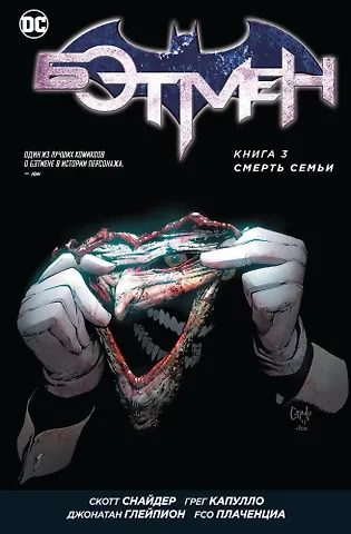 Великолепная арка с Джокером в ране Скотта Снайдера, здесь он показан наверное одним из самых безумных, жестоких и отвратительных из всех своих итераций. Он буквально срезает себе лицо и использует его на протяжении всего тома, что можно увидеть сразу по обложке. Бэтмен проходит через круги ада, чтобы добраться до клоуна, это сделано очень интересно. Ну и конечно шикарный рисунок Капулло максимально передает весь ужас происходящего. Один из лучших комиксов о противостоянии заклятых врагов, всем рекомендую к покупке.