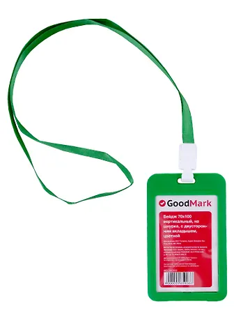 Цветной бейдж формата 70×100 миллиметров на шнурке GoodMark — удобное решение для конференций, офисных пропусков, выставок и учебных мероприятий. Прозрачный вертикальный карман надёжно защищает карточку от заломов и загрязнений, при этом информация хорошо читается. Благодаря шнурку бейдж удобно носить на шее: пропуск всегда под рукой и не потеряется. Ассорти из ярких цветов помогает разграничить отделы, группы участников или просто подобрать вариант под фирменный стиль.
