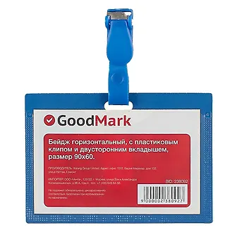 Хороший плотный бейдж с застежкой - клипсой. Можно повесить на шнурок. Я использую для хранения и защиты банковских и дисконтных карт. Сзади есть отверстие, чтобы легко вытащить то что в него вложено. Сама прозрачная пленка мягкая, не знаю это минус или плюс. Застёжка немного отличается по цвету и материал другой