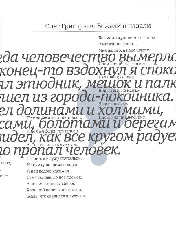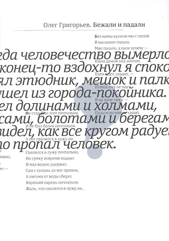 В книге "Бежали и падали" собраны стихотворения Олега Григорьева.