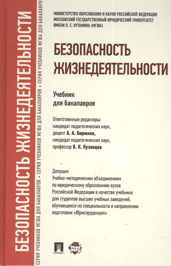 В предлагаемом учебнике излагаются теоретические основы «Безопасности жизнедеятельности», рассматриваются причины возникновения чрезвычайных ситуаций, даются рекомендации по защите населения и территорий от негативного воздействия различных факторов. В учебнике рассматриваются правовые основы безопасности жизнедеятельности, система защиты населения и территорий в чрезвычайных ситуациях и система гражданской обороны. Учебник предназначен для бакалавров по направлению подготовки «Юриспруденция» в качестве теоретической основы для обучения по дисциплине «Безопасность жизнедеятельности». Нормативные акты используются по состоянию на 1 февраля 2013 года ГРИФ: Допущен Учебно-методическим объединен