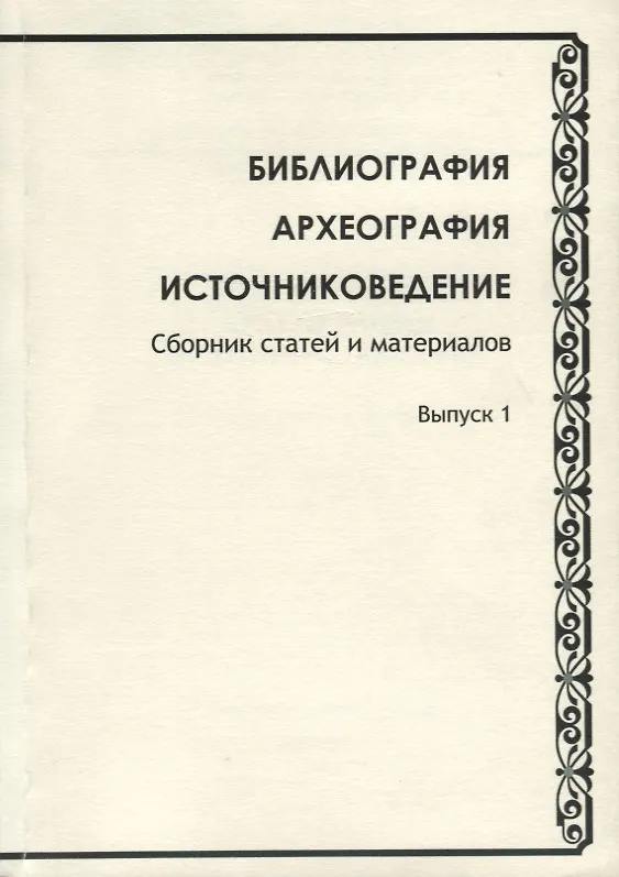 Библиография. Археография. Источниковедение. Сборник статей и материалов. Выпуск 1