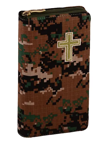 .Формат 83х175 мм, "камуфляжный" переплет на молнии, закладка, индексы для поиска библейских книг.