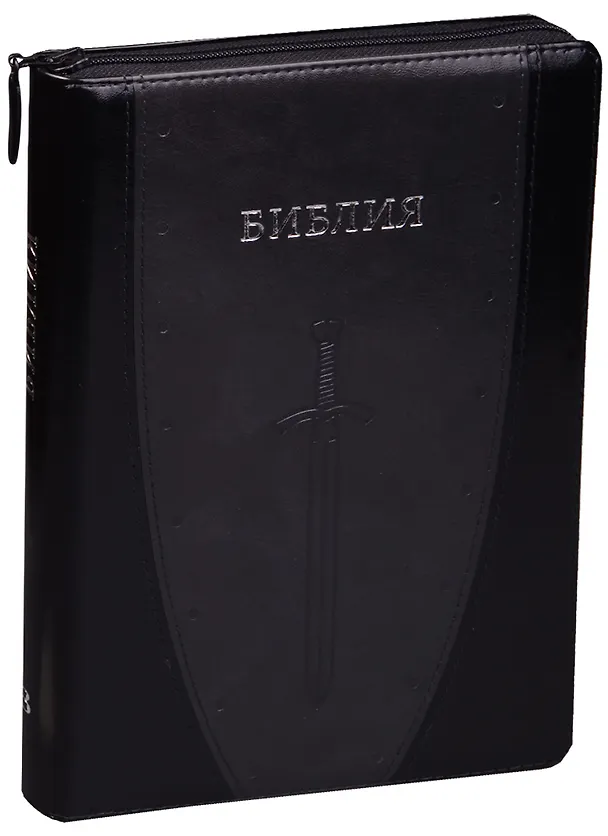 Вашему вниманию предлагается Библия в оригинальном подарочном оформлении (Щит и меч, черн./темно-сер. с серебр., термовинил, молн., инд., серебр.обр. V16-072-06z)