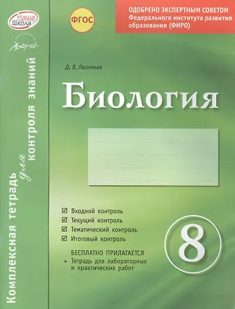 Биология 8 кл.Тетр.д/проверки знаний. Одобрено экспертным советом ФГАУ ФИРО. (ФГОС)./Леонтьев.